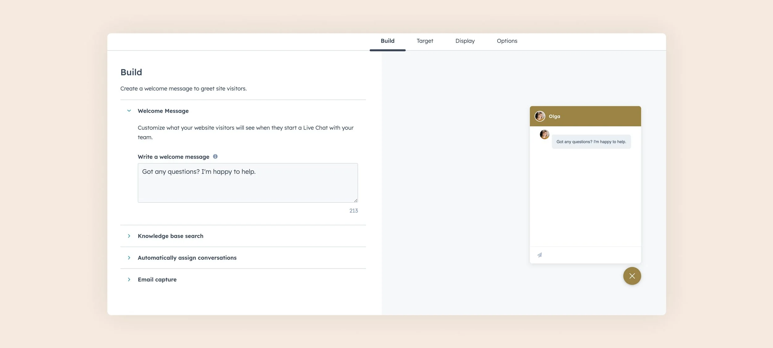Feel free to explore more Hubspot features! For instance, you can build a mini chat bot instead of using the default option, and ask your visitors for a name, email and a series of predefined questions. One cool feature we’re obsessed about is the ability to send chat transcripts to the email a customer leaves for you. Looks so professional!