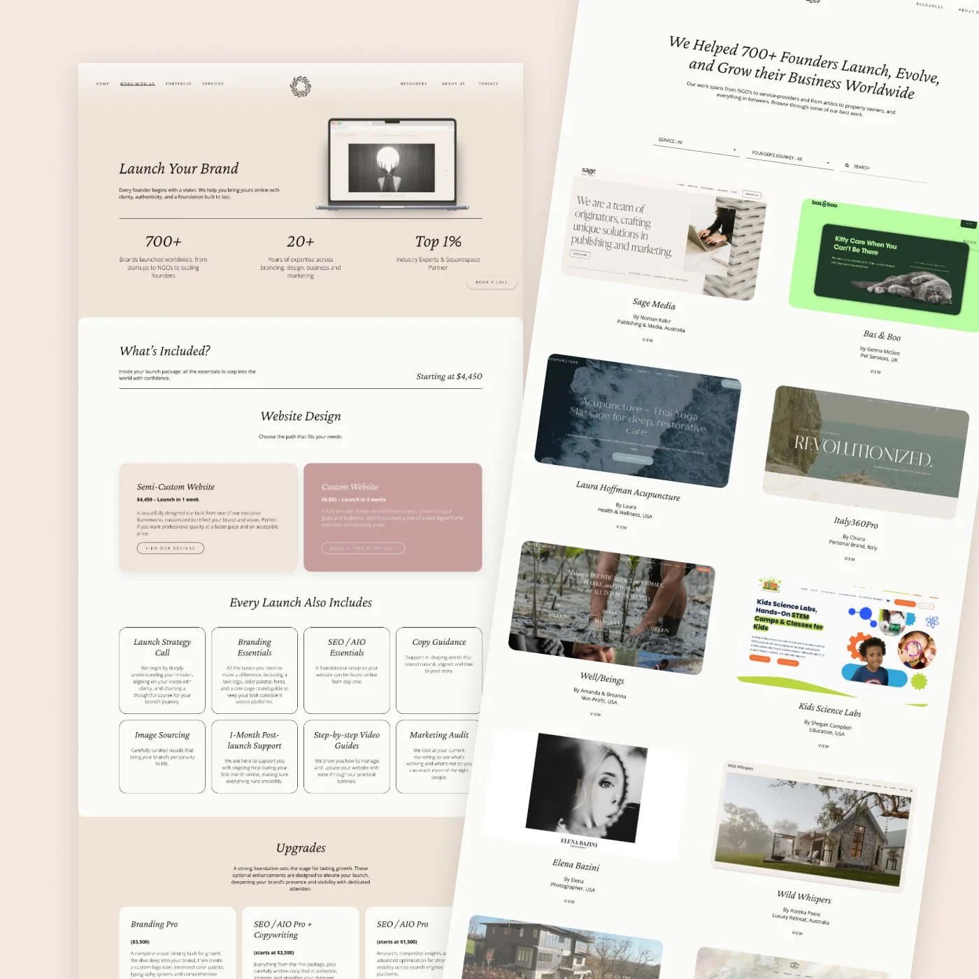 Meraki Branding is a female-led creative agency that builds strategic brands and Squarespace websites for founders at every stage. They specialize in brand strategy, visual identity, custom and semi-custom Squarespace sites, and SEO/digital marketing, helping founders launch, evolve, or grow their businesses online.