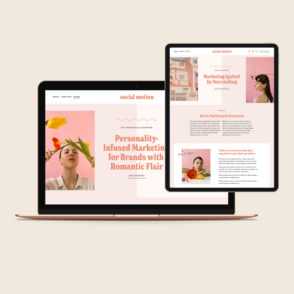 Social Motion is a feminine Squarespace 7.1 template for marketing professionals & course creators